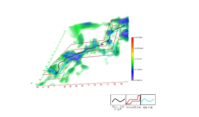 黑色线条为风化、火烧区边界,区域内低值在北东-南西及北西-南东方向均存在一定的连通性,地下径流通道可能呈现网状分布相互连通,因此可能存在地下网状径流。但是受限于勘探范围的约束,上述结论需要更大的勘探范围进一步验证。