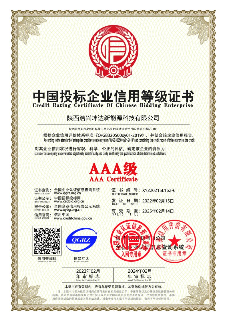 中国投标企业信用等级证书