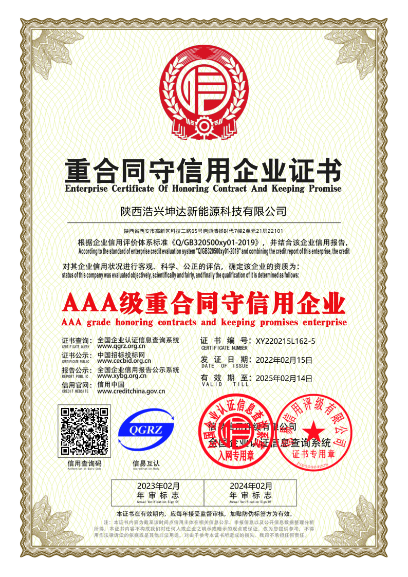 重合同守信用企业证书