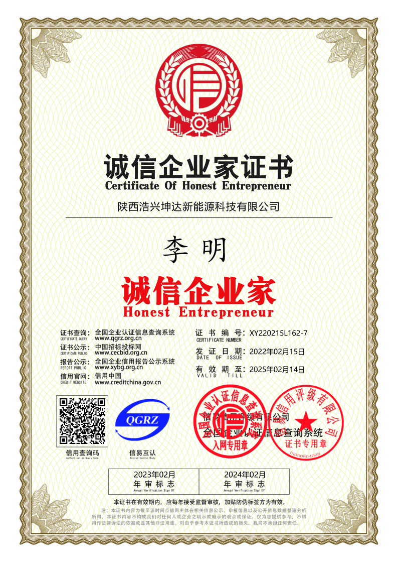 诚信企业家证书